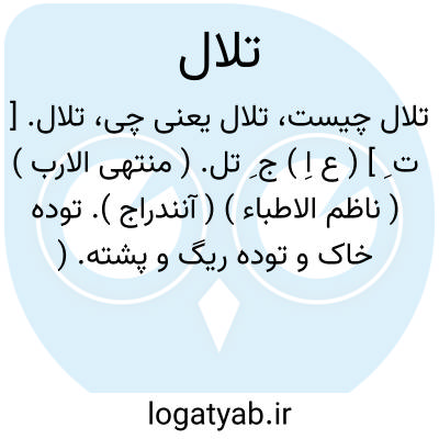 تلال. [ ت َ ] ( ع اِ ) از اتباع است، یقال: هو الضلال بن التلال. ( منتهی الارب ) ( از اقرب الموارد ). رجوع به تلالة شود.