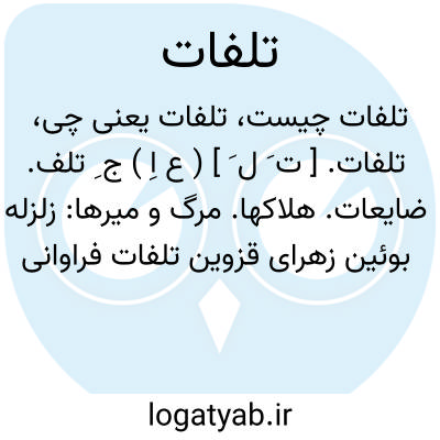 تلفات. [ ت َ ل َ ] ( ع اِ ) ج ِ تلف. ضایعات. هلاکها. مرگ و میرها: زلزله بوئین زهرای قزوین تلفات فراوانی دربرداشت. جنگ جهانی دوم تلفات سنگینی داشت.