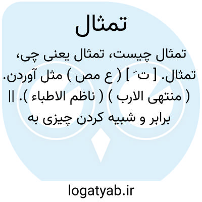 تمثال. [ ت َ ] ( ع مص ) مثل آوردن. ( منتهی الارب ) ( ناظم الاطباء ). || برابر و شبیه کردن چیزی به چیزی. ( از اقرب الموارد ). || نگاشتن پیکر، نگاشته مانند پیکری. ( منتهی الارب ). نگاشتن تمثال مانند پیکری.( ناظم الاطباء ). به همه معانی رجوع به تمثیل شود.