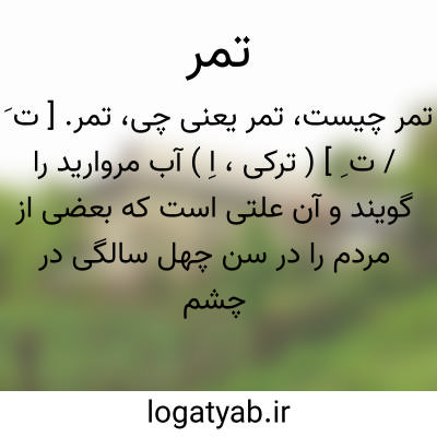 تمر. [ ت َ / ت ِ ] ( ترکی، اِ ) آب مروارید را گویند و آن علتی است که بعضی از مردم را در سن چهل سالگی در چشم بهم می رسد و چشم تاریکی می کند و بینایی نقصان می پذیرد و چون سن از پنجاه تجاوز نماید، آن علت بخودی خود برطرف گردد. ( برهان ) ( از انجمن آرا ) ( از فرهنگ رشیدی ) ( از فرهنگ جهانگیری ) ( از آنندراج ). کدورت جلیدیه که آب مروارید نیز گویند. ( ناظم الاطباء ). بیماریی که در چشم پیدا شود. ( غیاث اللغات ).