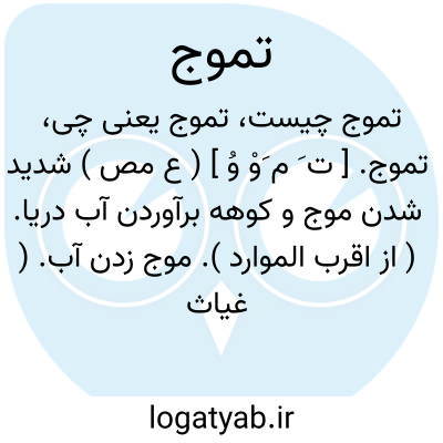 تموج. [ ت َ م َوْ وُ ] ( ع مص ) شدید شدن موج و کوهه برآوردن آب دریا. ( از اقرب الموارد ). موج زدن آب. ( غیاث اللغات ) ( از آنندراج ). || ( اِ )، موج موج زدگی و تلاطم و ترنند. ( ناظم الاطباء ): کنیزک خواست که آتش فتنه را بالا دهد و سیلاب آفت را در تموج آرد. ( سندبادنامه ص 77 ).