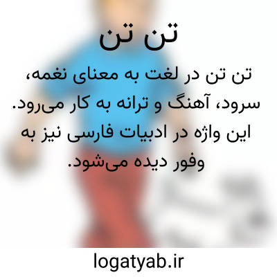 تن تن. [ ت َ ت َ ] ( اِ مرکب ) کنایه از نغمه و سرود. ( آنندراج ). سرود و نغمه و آهنگ و ترانه. ( ناظم الاطباء ) ( از فرهنگ فارسی معین ):