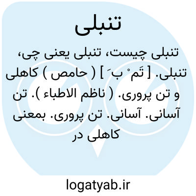تنبلی. [ تَم ْ ب َ ] ( حامص ) کاهلی و تن پروری. ( ناظم الاطباء ). تن آسانی. آسانی. تن پروری. بمعنی کاهلی در فارسی قدیم معمول نبوده فقط درنسخه ای از شاهنامه این بیت دیده می شود: