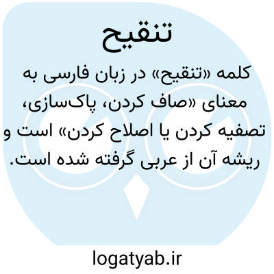 کلمه «تنقیح» در زبان فارسی به معنای «صاف کردن، پاکسازی، تصفیه کردن یا اصلاح کردن» است و ریشه آن از عربی گرفته شده است. این واژه معمولاً در متون علمی، ادبی و فقهی به کار میرود و دلالت بر کاری دارد که نقصها، اشتباهها یا ناخالصیها را از یک متن، اثر، نظریه یا مادهای برطرف کند. در متون فقهی، «تنقیح» به معنای اصلاح و بازبینی قوانین، احکام یا متون شرعی برای رفع ابهام و ارائه نسخهای روشن و دقیق است. در علوم و ادبیات، تنقیح میتواند به ویرایش و بازنویسی متون برای روانی و دقت بیشتر اشاره داشته باشد. همچنین در طب سنتی و شیمی، به فرایند تصفیه مواد و جدا کردن ناخالصیها گفته میشود. این واژه بیانگر دقت، اصلاح و پاکیزگی در هر زمینهای است. به عبارت دیگر، تنقیح عملی برای رسیدن به شکل کامل، بدون نقص و خالص یک چیز است. مترادفهایی چون «اصلاح»، «پاکسازی»، «بهبود» و «ویرایش» نیز معنای مشابهی دارند. استفاده از این واژه در متون رسمی و علمی نشاندهنده توجه به دقت و صحت محتوا یا ماده مورد نظر است.