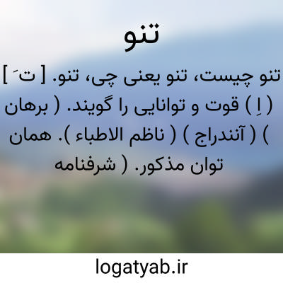 تنو. [ ت َ ] ( اِ ) قوت و توانایی را گویند. ( برهان ) ( آنندراج ) ( ناظم الاطباء ). همان توان مذکور. ( شرفنامه منیری ). ظاهراً از ترکیب تنومند این معنی ساخته شده. ( حاشیه برهان چ معین ). رجوع به تنومند شود.