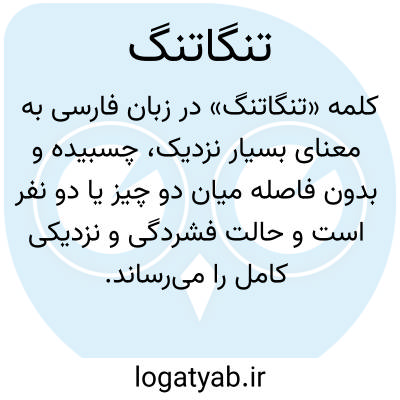 کلمه «تنگاتنگ» در زبان فارسی به معنای بسیار نزدیک، چسبیده و بدون فاصله میان دو چیز یا دو نفر است و حالت فشردگی و نزدیکی کامل را میرساند. این واژه زمانی به کار میرود که میان اشیا یا افراد هیچ فاصلهای دیده نشود و آنها کاملاً در کنار هم و به صورت فشرده قرار گرفته باشند. در کاربرد ظاهری، وقتی دو نفر تنگاتنگ مینشینند یعنی شانه به شانه و بسیار نزدیک به هم قرار دارند و فاصلهای میانشان نیست. در معنای مجازی، این کلمه برای نشان دادن رابطهای بسیار صمیمی، عمیق و محکم میان افراد نیز استفاده میشود. برای مثال، میتوان گفت دو دوست رابطهای تنگاتنگ دارند یعنی پیوندی نزدیک، پایدار و همراه با اعتماد زیاد میان آنها وجود دارد. این واژه همچنین برای توصیف همکاریهای بسیار نزدیک میان افراد، گروهها یا نهادها به کار میرود که هماهنگی زیادی دارند. در حوزه رقابت نیز، رقابت تنگاتنگ به رقابتی گفته میشود که دو طرف تقریباً برابر هستند و نتیجه بهسختی مشخص میشود. در چنین حالتی فاصله امتیازها یا تواناییها بسیار کم است و هر لحظه امکان تغییر نتیجه وجود دارد. بنابراین این کلمه هم نزدیکی فیزیکی را نشان میدهد و هم نزدیکی معنوی، احساسی یا میزان برابری در رقابت را بیان میکند.