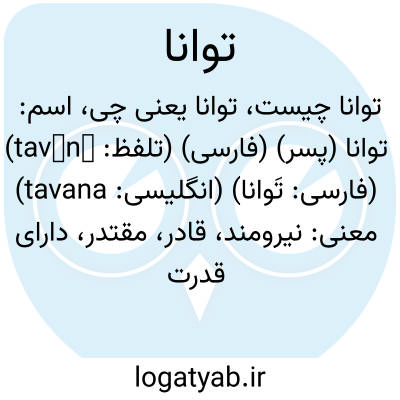 اسم: توانا (پسر) (فارسی) (تلفظ: tavānā) (فارسی: تَوانا) (انگلیسی: tavana)