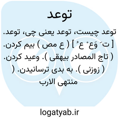 توعد. [ ت َ وَع ْ ع ُ ] ( ع مص ) بیم کردن. ( تاج المصادر بیهقی ). وعید کردن. ( زوزنی ). به بدی ترسانیدن. ( منتهی الارب ) ( ناظم الاطباء ). تهدید کردن. ( ازاقرب الموارد ).سرزنش کردن و ترسانیدن. ( آنندراج ).