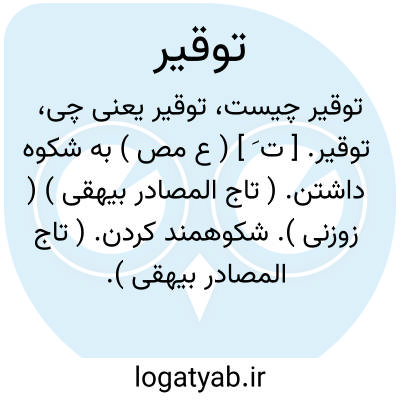 ۱ - بزرگ داشتن تعظیم کردن عزت و حرمت کسی را نگاهداشتن. ۲ - آزموده کردن. ۳ - ( اسم ) بزرگداشت تعظیم. جمع: توقیرات.