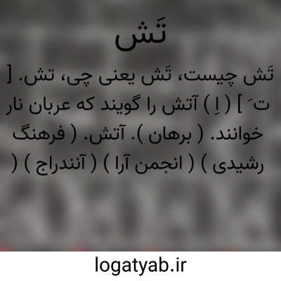 تش. [ ت َ ] ( اِ ) آتش را گویند که عربان نار خوانند. ( برهان ). آتش. ( فرهنگ رشیدی ) ( انجمن آرا ) ( آنندراج ) ( ناظم الاطباء ):