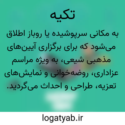 [ویکی شیعه] تکیه، در اصطلاح شیعیان ایرانی به محل برگزاری مراسم سوگواری پیشوایان دین به ویژه سوگواری محرم و اجرای تعزیه می گویند. این کلمه برای اشاره به مکان گردآمدن صوفیان، مزار مشایخ صوفیه، اقامتگاه موقت صوفیان در سفر و مهمانپذیر رایگان در شهرهای زیارتی نیز به کار رفته است.