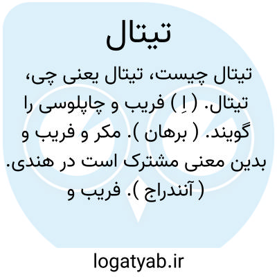 تیتال. ( اِ ) فریب و چاپلوسی را گویند. ( برهان ). مکر و فریب و بدین معنی مشترک است در هندی. ( آنندراج ). فریب و حیله و مکر و چاپلوسی.( ناظم الاطباء ). فریب و مکر و چاپلوسی و تملق. ( فرهنگ فارسی معین ). سخنان فریبنده. گفتاری فریبنده. سخنان آرام کننده. چرب زبانی با طفل. آرام کردن بچه و مانند او را بزبان: با زبان و تیتال طوری بچه را از گریه بازداشتم. با بچه با زبان و تیتال باید رفتار کرد نه با کتک. ( از یادداشتهای مرحوم دهخدا ):