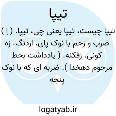 تیپا. ( اِ ) ضرب و زخم با نوک پای. اردنگ. زه کونی. زفکنه. ( یادداشت بخط مرحوم دهخدا ). ضربه ای که با نوک پنجه زنند. تک پا. ( فرهنگ فارسی معین ).
