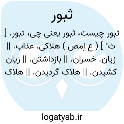 (ثُ بُ ) [ ع. ] ۱ - (مص م. ) بازداشتن. ۲ - هلاک کردن. ۳ - (مص ل. ) زیان کشیدن. ۴ - هلاک گردیدن. ۵ - (اِ. ) عذاب.