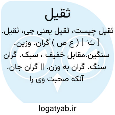 (ثَ ) [ ع. ] (ص. ) ۱ - گران، سنگین. مق خفیف، سبک. ۲ - گران جان. ۳ - سخت بیمار. ۴ - یکی از هفده بحر اصول موسیقی.