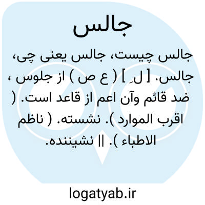جالس. [ ل ِ ] ( ع ص ) از جلوس، ضد قائم وآن اعم از قاعد است. ( اقرب الموارد ). نشسته. ( ناظم الاطباء ). || نشیننده. نشاننده. ( آنندراج ) ( غیاث اللغات ). || به «نجد» رونده. ( از اقرب الموارد ):
