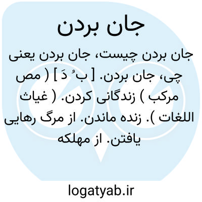 جان بردن. [ ب ُ دَ ] ( مص مرکب ) زندگانی کردن. ( غیاث اللغات ). زنده ماندن. از مرگ رهایی یافتن. از مهلکه سالم بیرون آمدن. از مرگ خلاص شدن. خلاص شدن. مستخلص شدن. نجات یافتن. سالم ماندن: