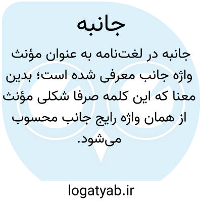 جانبة در لغت‌نامه به عنوان مؤنث واژه جانب معرفی شده است؛ بدین معنا که این کلمه صرفاً شکلی مؤنث از همان واژۀ رایج جانب محسوب می‌شود. بر اساس این تعریف، هرگاه نیاز به تأنیث واژه جانب در ساختار دستوری یا معنایی خاصی باشد، از این شکل مؤنث استفاده خواهد شد. برای درک کامل‌تر مفهوم و کاربردهای احتمالی این واژه، ارجاع به مدخل اصلی جانب در منابع لغوی ضروری است، زیرا معنای اصلی از همان ریشه استخراج می‌گردد.