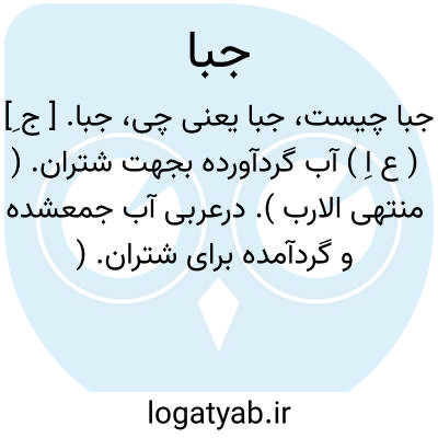جبا. [ ج ِ] ( ع اِ ) آب گردآورده بجهت شتران. ( منتهی الارب ). درعربی آب جمعشده و گردآمده برای شتران. ( برهان ). || مال فراهم آورده. ( منتهی الارب ). || باج و خراج. ( برهان ) ( آنندراج ) ( ناظم الاطباء ):