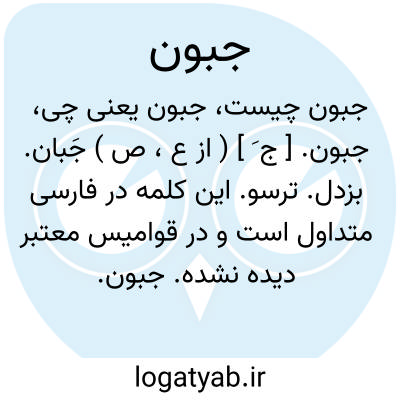 جبون. [ ج َ ] ( از ع، ص ) جَبان. بزدل. ترسو. این کلمه در فارسی متداول است و در قوامیس معتبر دیده نشده.