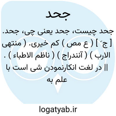 جحد. [ ج َ ] ( ع مص ) کم خیری. ( منتهی الارب ) ( آنندراج ) ( ناظم الاطباء ). || در لغت انکارنمودن شی است با علم به آن شی ٔ. ( از کشاف اصطلاحات الفنون ). انکار کردن حق کسی را با علم و دانست خود. ( از منتهی الارب ) ( از اقرب الموارد ). انکار کردن بدانستگی. ( غیاث اللغات ) ( از اقرب الموارد ). انکار کردن.( دهار ) ( ترجمان القرآن عادل ). انکار کردن از چیزی. ( تاج المصادر بیهقی ). تکذیب کردن حق کسی را. ( از اقرب الموارد ). || بخیل یافتن کسی را. ( از منتهی الارب ) ( از ناظم الاطباء ). || ( اصطلاح صرف ) فعل مضارع منفی به لَم ْ را گویند. میر سیدشریف آرد: فعل مجزوم به لَم ْ که برای نفی ماضی است و عبارت است از اخبار به ترک فعل در گذشته و بنابراین نفی اعم از جحد است. برخی گویند جحد فعل مضارعی است که به حرف لم مجزوم باشد و آن بمعنای نفی ماضی و ضد ماضی است. ( از تعریفات جرجانی ). و صاحب کشاف آرد: در نزد علمای عربیت نیز نزدیک بهمین معنی [ معنی لغوی، انکارنمودن شی ٔ... ]، باشد. در اتقان گوید: نفی کننده اگردر گفتار خود صادق بود سخن او را نفی و منفی نامند.و اگر در سخن خود راه دروغ پیموده بود، گفتار او راجحد و نفی نام گذارند، چنانچه شرح آن در ضمن بیان معنی کلمه نفی بیاید. و نیز علماء عربیت فعل منفی به لم را هم جحد خوانند مانند لم یضرب بنا بر آنچه از جریان اصطلاحات آنان مستفاد میگردد. و در کتب علم صرف نیز بدین معنی تصریح کرده اند. || ترک کردن دین و عقیده ای که خطا باشد. ( از دزی ). || پنهان داشتن احساسات و عواطف. ( از دزی ). || ( ص ) کم خیر. ( منتهی الارب ) ( آنندراج ) ( ناظم الاطباء ). || ( اِخ ) نام سوره کافرون از قرآن.