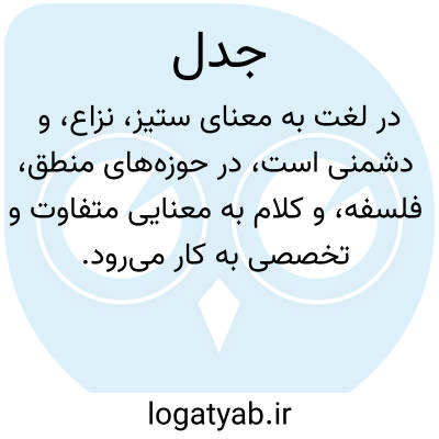 ب) جدل در لغت به معنای محکم بافتن ریسمان یا مو، کسی را به زمین زدن و محکم و قوی شدن دانه است. حسین بن محمد راغب اصفهانی، المفردات فی غریب القرآن، ص ۸۹، چاپ محمد سید کیلانی، تهران ۱۳۳۲ ش. به نظر ابن فارِس معنای اصلی جدل، استواری یک چیز است و معانی دیگر به آن باز می گردد.
