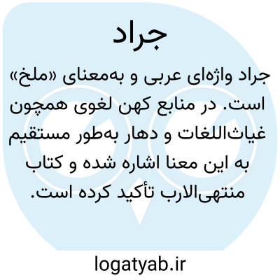 جَراد واژه‌ای عربی و به‌معنای ملخ است. در منابع کهن لغوی همچون غیاث‌اللغات و دهار به‌طور مستقیم به این معنا اشاره شده و کتاب منتهی‌الارب تأکید کرده که این واژه برای هر دو جنس نر و ماده یکسان به‌کار می‌رود. شکل مؤنث این کلمه نیز جَرادة ذکر شده است. این واژه در متون معتبری چون ترجمان‌القرآن عادل و کشّاف زمخشری نیز آمده و جایگاه خود را در زبان عربی تثبیت کرده است.