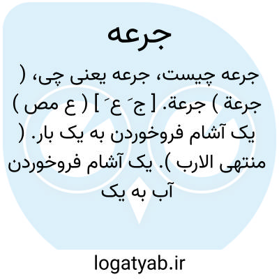(جُ عَ ) [ ع. جرعة ] ۱ - (مص ل. ) کم کم نوشیدن. ۲ - (اِ. ) آن مقدار از آب یا هر چیز مانند آن که یک بار بیآشامند.