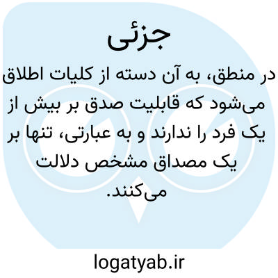 در منطق، به آن دسته از کلیات اطلاق می‌شود که قابلیت صدق بر بیش از یک فرد را ندارند و به عبارتی، تنها بر یک مصداق مشخص دلالت می‌کنند. این مفهوم، در مقابل کلی قرار می‌گیرد و ویژگی اصلی آن این است که هرگز نمی‌تواند بر دو یا چند فرد مختلف صادق باشد؛ به گونه‌ای که حتی ذهن نیز قادر به تصور افراد متعددی تحت آن مفهوم نیست. به عنوان مثال‌های کلاسیک، اسامی اعلام مانند «سقراط» یا «افلاطون» و همچنین اشاره‌هایی که صرفاً به یک فرد خاص دلالت دارند، نظیر ضمایر اشاره‌ای که به صورت «این» یا «آن» به یک شیء واحد اشاره می‌کنند، همگی در دسته این مفاهیم قرار می‌گیرند.
