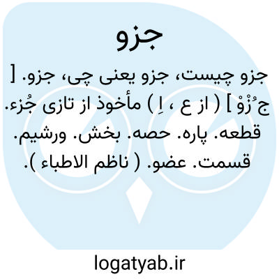 جزو. [ ج ُزْوْ ] ( از ع، اِ ) مأخوذ از تازی جُزء. قطعه. پاره. حصه. بخش. ورشیم. قسمت. عضو. ( ناظم الاطباء ). بهر. لخت. برخ. کرسسه. شطر. پرگاله. ( یادداشت مؤلف ). ظاهراً مخفف جزء بهمزه عربی است و چون آنرا مضاف نمایند به چیزی بجای همزه واو نویسند و گویند جزو طلا هم طلا است و همچنین جزو بدن و جز آن و بهر تقدیر اسم است و بمعنی غیر نیز اسم است لیکن به اضافت مستعمل نیست. ( از آنندراج ). جزو به واو در اصل جزءبه همزه است ولی شعرا نیز آنرا به واو استعمال کرده و با کلمه عضو هم قافیه قرار داده اند. ( از مجله دانشکده ادبیات تبریز سال اول شماره 3 ):