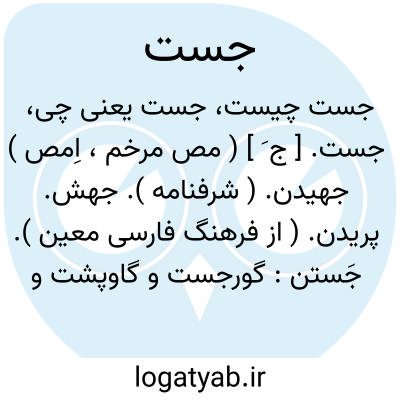 جست. [ ج ُ ] ( مص مرخم، اِمص )جُستن. تفحص کردن. جست و جو. ( از فرهنگ فارسی معین ). تفحص و تجسس و بحث. طلب. کاوش. تفتیش: