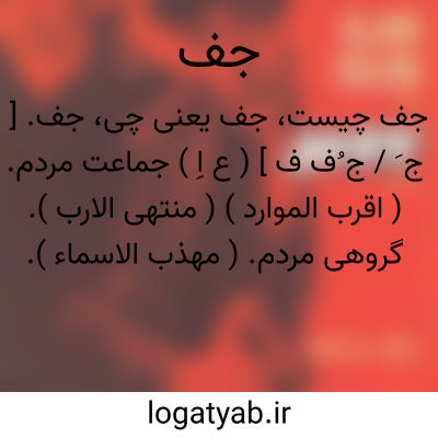 جف. [ ج َ / ج ُف ف ] ( ع اِ ) جماعت مردم. ( اقرب الموارد ) ( منتهی الارب ). گروهی مردم. ( مهذب الاسماء ). || عدد بسیار. ( اقرب الموارد ) ( منتهی الارب ). ج، جفوف.