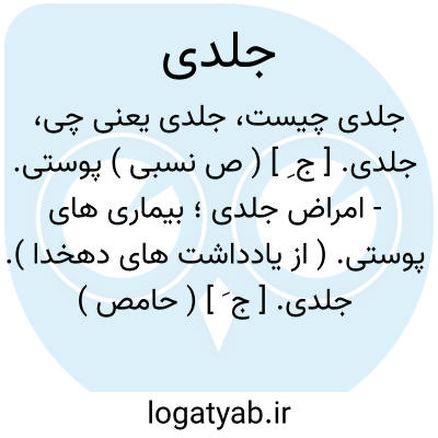 جلدی. [ ج َ ] ( ص نسبی )منسوب است به جلدبن سعد العشیرة. ( انساب سمعانی ).