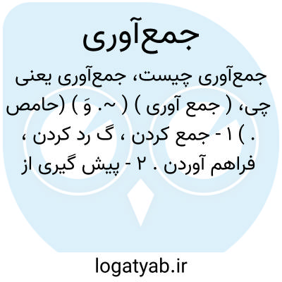 ( جمع آوری ) ( ~. وَ ) (حامص. ) ۱ - جمع کردن، گ رد کردن، فراهم آوردن. ۲ - پیش گیری از انتشار یا گسترش. ۳ - نظم دادن به چیزهای آشفته و در هم بر هم.