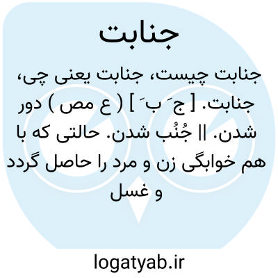 جنابت. [ ج َ ب َ ] ( ع مص ) دور شدن. || جُنُب شدن. حالتی که با هم خوابگی زن و مرد را حاصل گردد و غسل کردن بر آنان واجب شود. رجوع به جنابة شود. || ( اِمص ) جُنُب شدگی. ( فرهنگ فارسی معین ).
