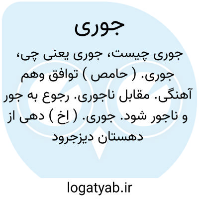 جوری. ( ص نسبی ) منسوب به جورو آن شهری است بفارس: گلاب جوری. رجوع به جور شود.