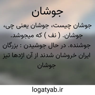 جوشان. ( اِخ ) دهی است از دهستان بربرود بخش الیگودرز شهرستان بروجرد. جلگه و معتدل. جمعیت آن بالغ بر 509 تن میشود. آب از قنات و محصول غلات، لبنیات، چغندر، پنبه. ( از فرهنگ جغرافیایی ایران ج 6 ).