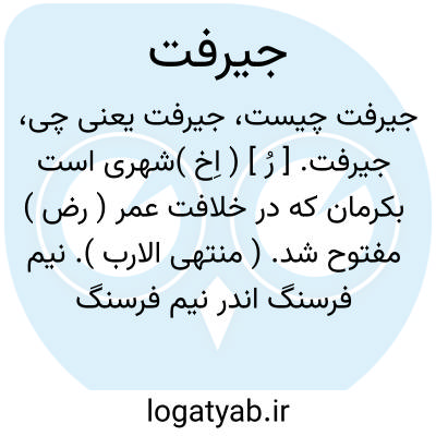 جیرفت. [ رُ ] ( اِخ )شهری است بکرمان که در خلافت عمر ( رض ) مفتوح شد. ( منتهی الارب ). نیم فرسنگ اندر نیم فرسنگ است. جایی آبادان و بسیارنعمت و ایشان را رودی است تیز همی رود بانگ کنان و آب وی چندان است که شست آسیا بگرداند و اندرجویهای این خاک زر یابند. ( حدود العالم ). یکی از شهرستانهای استان هشتم کشور و خلاصه مشخصات آن بشرح زیر است: از طرف شمال بشهرستان بم، از خاور به شهرستان ایرانشهر، از جنوب به بندرعباس، از باختر ببخش بافت و سعادت آباد از شهرستان سیرجان. هوای بخشها و دهستانهای تابع شهرستان مختلف و بطور کلی قسمتهای مرتفع ( بیش از 1200 گز ) سردسیری و قسمتهای پست معتدل و سردسیری است. محصول عمده آن غلات، حبوبات، خرما و لبنیات است. شهرستان جیرفت از بخش های زیر تشکیل شده است: 1- بخش سبزواران شامل دهستان سبزواران. 2 - بخش جبال بارز شامل دهستان گاوکان، امجز، مسکون. 3 - بخش ساردوئیه شامل دهستان دلفارد، بهرآسمان، گور، سرویزن، اسفندقه، هنزا، سرمشک، گروه و ساردوئیه. 4 - بخش کهنوج شامل دهستان انگهران، مارز، کوه شهری، رمشک، منوجان، قلعه گنج، رودبار، نمداد و گلاشکرد. بخش سبزواران مشتمل بر 202 آبادی و بالغ بر 18970 تن جمعیت است، بخش جبال بارز 237 آبادی و 9928 تن، بخش ساردوئیه 552 آبادی و 18802 تن، بخش کهنوج 336 آبادی و 34274 تن. بنابراین شهرستان جیرفت از 1300 آبادی تشکیل شده و 81974 تن سکنه دارد. ( از فرهنگ جغرافیایی ایران ج 8 ).