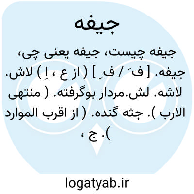 زین جیفه گاه جافی زین مغسرای مغبر.خاقانی.- جیفه نهاد؛ مردارخواره. که درون از مردار آگنده دارد: