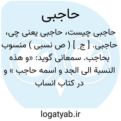 حاجبی. [ ج ِ ] ( اِخ ) رجوع شود به احمدبن ابراهیم بن احمدبن حاجب نیشابوری، در این لغت نامه، و انساب سمعانی ورق 149.