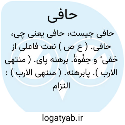 حافی. ( ع ص ) نعت فاعلی از حَفی ً و حِفْوةً. برهنه پای. ( منتهی الارب ). پابرهنه. ( منتهی الارب ): التزام کرد عورات را سافرات الوجوه، و رجال را حافیات الارجل از خانها بیرون آورد. ( جهانگشای جوینی ).