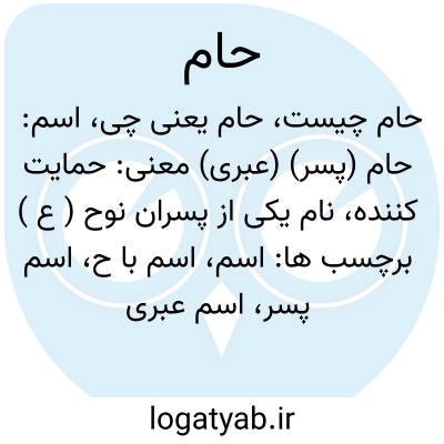 حام. ( اِخ ) نام یکی از سه پسر نوح است که جد امجد قبطیان و بربریان و سودانیان میباشد. ( سمعانی ورق 6 ). پسر نوح و پدر سیاهان باشد که هندو گویند و حبش خوانند و او را دو پسر بود. ( مجمل التواریخ والقصص ص 109 ). ابن بلخی گوید: و بعضی از اهل تواریخ میگویند کیومرث بعد از نوح بوده است و نسب او چنین می گویند: حام بن یافث بن نوح و در نسب او [ کیومرث ] اختلاف است. ( فارسنامه ابن بلخی ص 26 ). رجوع به تاریخ گزیده ص 21 و 26 و 27 شود. ابوالسودان که گویند پدر سیاه پوستانست و او را چهار پسر بوده:کوش، مصرایم، فوط، کنعان. ( قاموس مقدس ). بابلی ها راتوریة از اعقاب حام دانسته. ( ایران باستان ص 30 ). صاحب حبیب السیر گوید ( ج 1 ص 13 ): حام بقول فرقه ای از علمای اسلام در سلک انبیای عظام انتظام داشت و نوح در زمان تقسیم ربع مسکون دیار مغرب و زنج و حبشه و هند و سند و اراضی سودان را به حام تفویض کرد و حام بدان مقام شتافته حق سبحانه و تعالی او را نه پسر کرامت فرمود: هند، سند، زنج، نوبه، کنعان ( ؟ )، کوش، قبط، بربر و حبش. در سبب تغیر لون ذریّات وی وجوه متعدده گفته اند، ازجمله آنکه روزی نوح ( ع ) در خواب بود و عورتش مینمود حام بر آن بگذشت و نپوشید و بعقیده صاحب تاریخ گزیده بخندید، و این سوء ادب موجب آن شد که رنگ اولاد او سواد پیدا کرد و پیغمبری از نسلش منقطع گردید. و وجهی دیگر آنکه نوح علیه السلام در کشتی اولاد و اتباع خود را از مباشرت نسوان منع کرد و حام مخالفت فرموده پدر جایز دانسته و با منکوحه خویش نزدیکی کرد، و نوح علیه السلام بر این واقعه مطلع شده و دعا کرد: اللهم غیّر نطفته. و تیر این مسئلت به هدف اجابت رسیده اولاد حام سیاه فام متولد شدند. نقل است که چون ذریت حام بسیار شدند به تقدیر ایزدی هر فرقه ای به لغتی تکلم کردند لاجرم از صحبت یکدیگر متفرق شده هر گروهی بطرفی رفتند و به تعمیر موضعی پرداختند - انتهی. نام پسر سوم حضرت نوح ( ع ) است نظر به روایت کتب عبرانی وقتی آن حضرت عریان بخواب رفته بود گذر حام به آنجا افتاد و پدر را در همان حال گذاشته گذشت، بعداً دوپسر دیگر او سام و یافث بدانجا آمده بدن پدر را مستور ساختند چون نبی اﷲ از خواب بیدار گردید در حق نخستین، دعای بد و درباره دو دیگر دعای نیک کرد، در اثرهمین نفرین و دعا روی حام و تمام نژاد او سیاه و محکوم به بردگی نژاد سفید گشتند. اما روی آن دو برادر و ذریه آنان سفید ماند. حام را سه پسر موسوم به کنعان، کوش و قوط بود. گویند اقوام: قبط، حبش، سودان و بربر از نسل و نژاد اینان بوجود آمده اند، متأخران ونسابان و علمای لسان نیز طوایف و اقوام قبط و حبش را اقوام حامیه نامیده اند و برخی از دانشمندان بربریان را نیز به این زمره درآورده اند. زبانهای حامی با السنه سامی بی تناسب نیستند ولی تناسبشان به اندازه تناسب موجوده در بین انواع خود السنه سامیه نمیباشدیعنی در درجه دوم است. پاره ای از مورخان اسلام مردم فینیقیه را هم از نژاد حام میدانند ولی دانشمندان زبان شناس با این قول توافق ندارند و اقوام نامبرده رااز نژاد سامی میشمارند. ( قاموس الاعلام ):