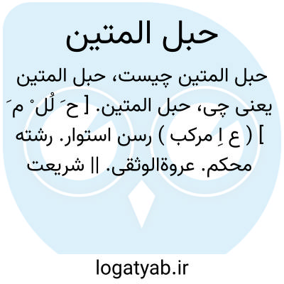 حبل المتین. [ ح َ لُل ْ م َ ] ( ع اِ مرکب ) رسن استوار. رشته محکم. عروةالوثقی. || شریعت اسلام. || قرآن. ( دهار ) ( دستور اللغه ادیب نطنزی ). و در شواهد ذیل گاه معنی شریعت و گاه قرآن و گاه شاید معنی اصلی آن مراد باشد: