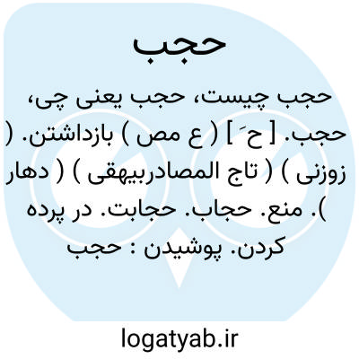 حجب. [ ح َ ] ( ع مص ) بازداشتن. ( زوزنی ) ( تاج المصادربیهقی ) ( دهار ). منع. حجاب. حجابت. در پرده کردن. پوشیدن:
