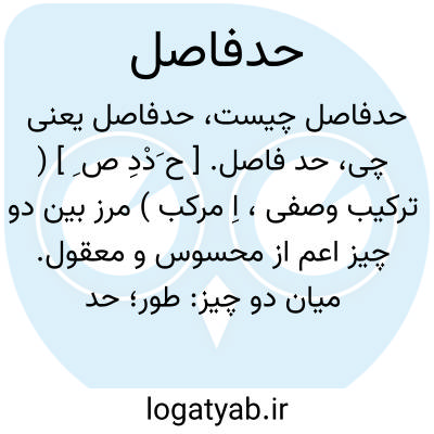حد فاصل. [ ح َدْدِ ص ِ ] ( ترکیب وصفی، اِ مرکب ) مرز بین دو چیز اعم از محسوس و معقول. میان دو چیز: طور؛ حد فاصل میان دو چیز. طخوم؛ حد فاصل میان دو زمین. ( منتهی الارب ).