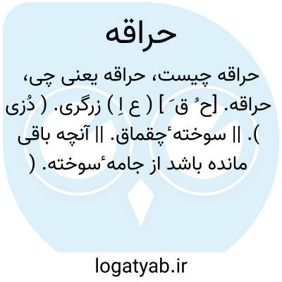( اسم ) ۱ - نوعی کشتی جنگی در قدیم که از آن مواد محرقه بسوی دشمن پرتاب میشد کشتی نفت انداز. جمع: حراقات. ۲ - آینه آیینه. ۳ - شمشیر قاطع.