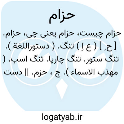 حزام. [ ح َزْ زا ] ( ع ص، اِ ) باربند. کسی که بار بندد. کسی که بار کاغذ را بندد، به اصطلاح ماوراءالنهر. ( سمعانی ). ج، حزامون.
