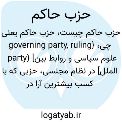 {governing party, ruling party} [علوم سیاسی و روابط بین الملل] در نظام مجلسی، حزبی که با کسب بیشترین آرا در انتخابات به تنهایی یا در قالب ائتلاف، مسئولیت ادارۀ دولت را در دست می گیرد
