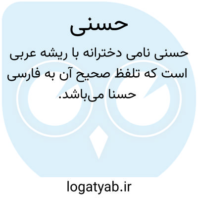 حسنی نامی دخترانه با ریشۀ عربی است که تلفظ صحیح آن به فارسی حُسنا می‌باشد. این نام در زبان عربی به‌صورت حُسنیٰ نوشته می‌شود و تلفظ آن بر وزن فُعلی است. ازلحاظ معنایی، این نام برگرفته از ریشۀ «ح‑س‑ن» به معنای نیکی و زیبایی است و به‌صورت صفت تأنیت به معنی نیکو، زیبا و پسندیده به‌کار می‌رود. در متون کهن فارسی و عربی، این واژه برای توصیف امور دارای کیفیت برتر و شایسته به‌کار می‌رفته است. کاربرد این نام در فرهنگ فارسی‌زبان، نشان‌دهنده‌گرایش به نام‌هایی با بار معنایی مثبت و ارزشمند است. انتخاب چنین نامی علاوه بر زیبایی آوایی، بیانگر آرزوی برخورداری دارنده‌ی نام از صفات نیک و فضیلت‌های اخلاقی است.