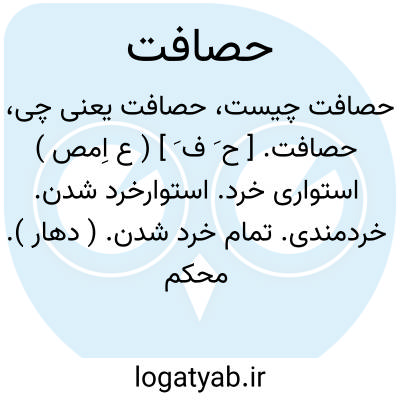 حصافت. [ ح َ ف َ ] ( ع اِمص ) استواری خرد. استوارخرد شدن. خردمندی. تمام خرد شدن. ( دهار ). محکم عقل بودن. استواری عقل. ( غیاث ). محکمی عقل. جودت رای.متانت رای. تمام خردی. ( ترجمان جرجانی ترتیب عادل ). قوی رایی. تمام خرد و قوی رای شدن. تمام خرد شدن. ( زوزنی ). حصافت رای یا حصافت عقل؛ استواری آن. استحکام رای. استحکام عقل: اما بر شهامت و تمامی حصافت وی اعتماد هست که به اصل نگرد و به فرع دل مشغول ندارد. ( تاریخ بیهقی ص 333 ). جوانی با حصافت کهول. ( تاریخ بیهقی ص 361 ). امیرک طوس و جمعی که بحصافت موسوم بودند... گفتند صواب آن است که... ( تاریخ بیهقی ). وبحقیقت کان خرد و حصافت و گنج تجربت و ممارست است. ( کلیله و دمنه ). و اعتماد بر کرم عهد و حصافت رای تومقصور داشته ایم. ( کلیله و دمنه ). و بدین کتاب کمال خرد و حصافت او میتوان شناخت. ( کلیله و دمنه ). امّا من نیز نزدیک خاندان حصافت معذورم. ( جهانگشای جوینی ). لباس وجود را بطراز سعادت مزین و روان او به انوارحصافت روشن گرداند. ( جهانگشای جوینی ). || استواری. محکمی. محکم شدن. استوار شدن. || صاحب غیاث بکلمه، معنی خشکی و تنگی هم داده است و در دیگر لغت نامه ها دیده نشد. ( یادداشت بخط مؤلف ).